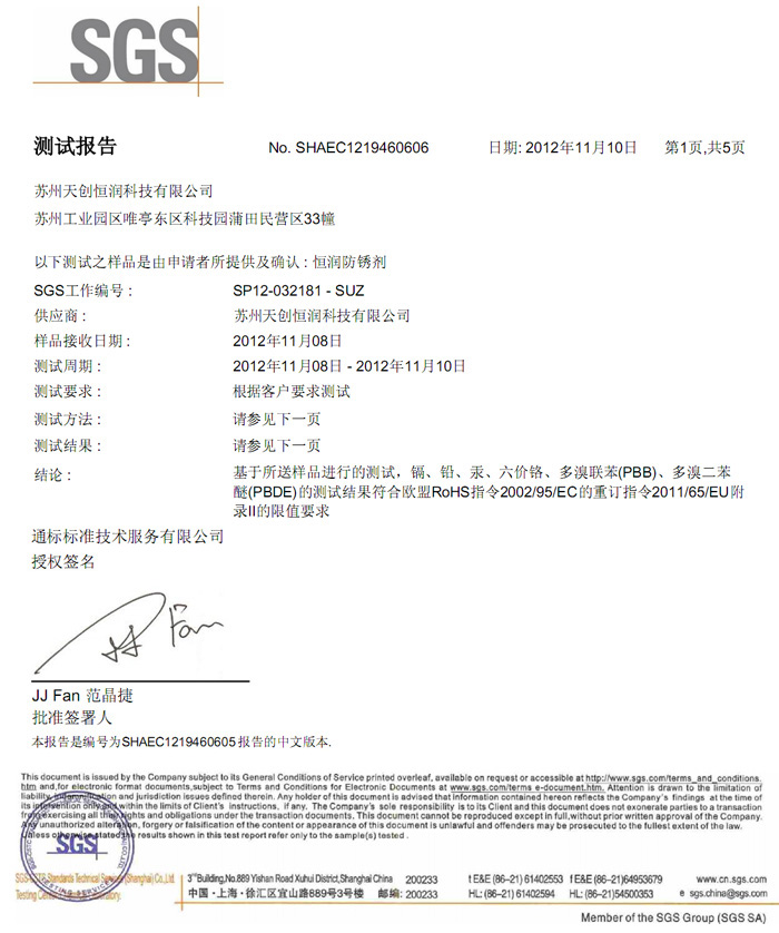 恒润防锈剂测试报告文件下载防锈油中文版报告.PDF
